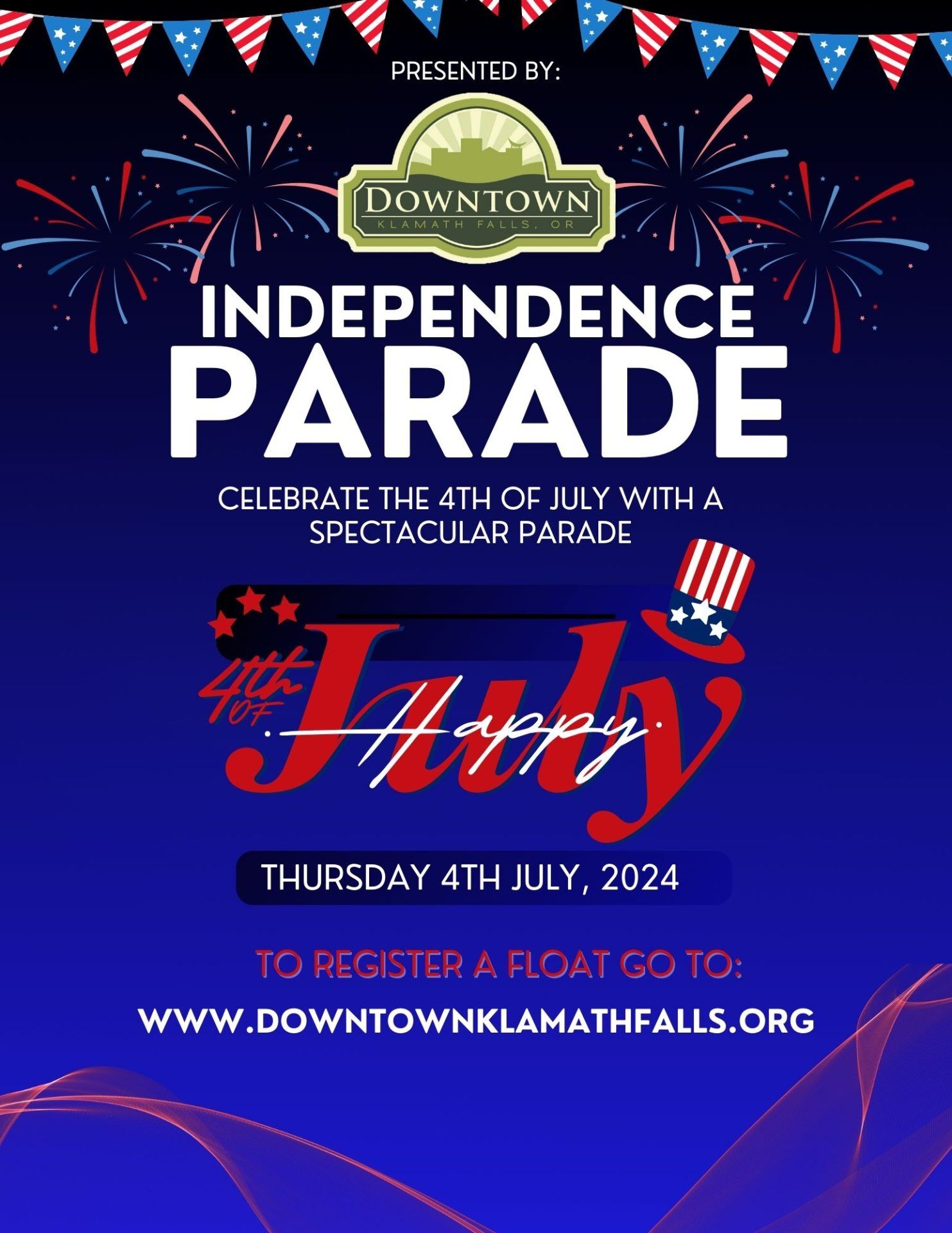 Get ready to celebrate Independence Day in grand style with the Klamath Falls Downtown Association Presents the 4th of July Parade! Join us as we line Main Street with vibrant floats and community groups, all coming together to honor the spirit of freedom and patriotism.