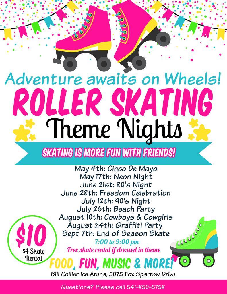 December 16, 2025 « All Events This event has passed. End of Season Skate September 7, 2024 @ 7:00 pm - 9:00 pm $10 « Farmers Market 🌤 63°F / 92°F » FREE SKATE RENTAL IF DRESSED IN THEME Add to calendar Google Calendar iCalendar Outlook 365 Outlook Live Details Date: September 7, 2024 Time: 7:00 pm - 9:00 pm Cost: $10 Event Category: Leisure Venue Bill Collier Ice Arena 5075 Fox Sparrow Dr. Klamath Falls, OR 97601 United States + Google Map Phone (541) 850-5758 View Venue Website